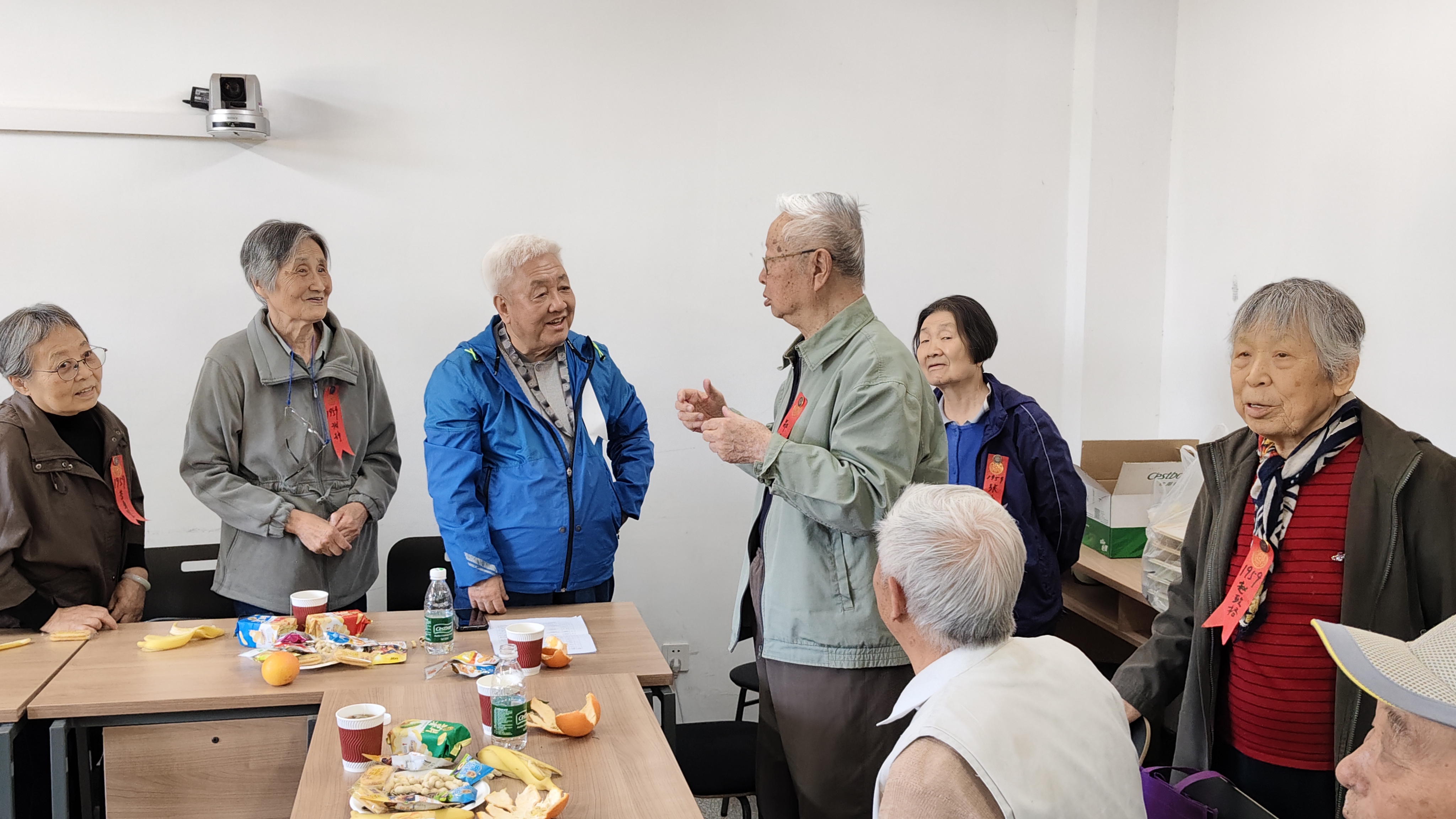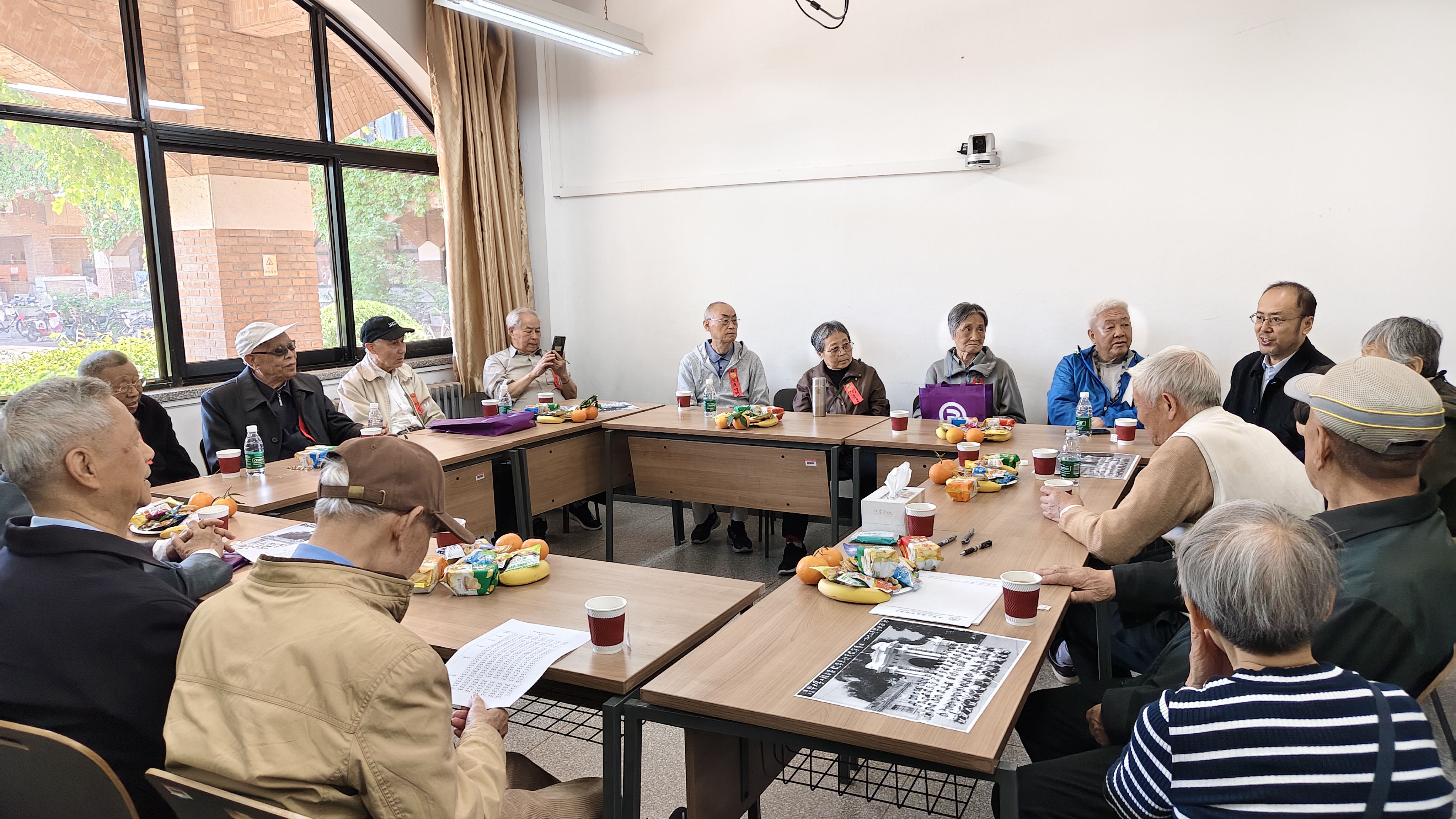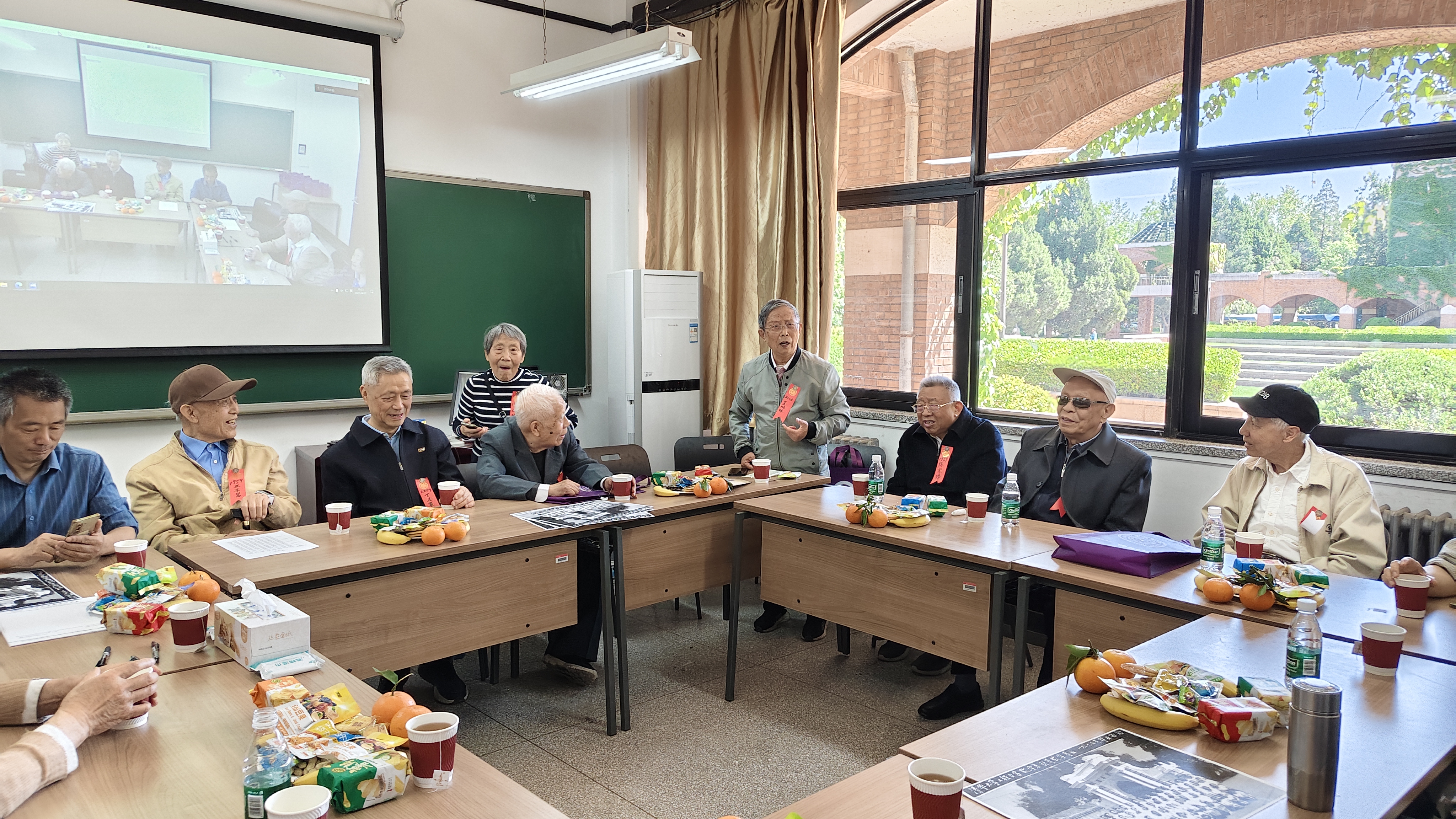 校庆的晨光里,从大江南北奔赴而来的人群中,一支由近20位银发校友组成的队伍格外引人注目,他们是工程力学数学系计算数学专业1959级刘晓遇、王祜民、赵致格、谢静等系友。带着岁月的沉淀及对母校的深情,他们细数入学66年、毕业60年以来的点点滴滴,眼角的笑意与亲切的问候,将教室氤氲成一片温暖的怀旧港湾。在座谈中,系友们围聚在一起,共同观看当年的毕业合影,一一为晚辈后学讲述照片里的人和事。吴炳林系友特别提示大家要注意身体健康,并认为清华优良的体育传统是人生中的一笔宝贵财富,陈宗泽系友也分享了自己打太极拳的心得。有趣的是,彼时正在55级系友座谈会上分享往昔的郑人杰老师,正是59级计算数学专业的授课教师。听闻昔日学子齐聚,他便起身奔赴与这群“大孩子”的重逢之约。郑老师的出现让现场的系友们倍感亲切与激动。时光在此刻编织出了奇妙的联动,在场的系友家属们看到这一幕,也深受触动,当日,向延刚的女婿写下了自己的感受: