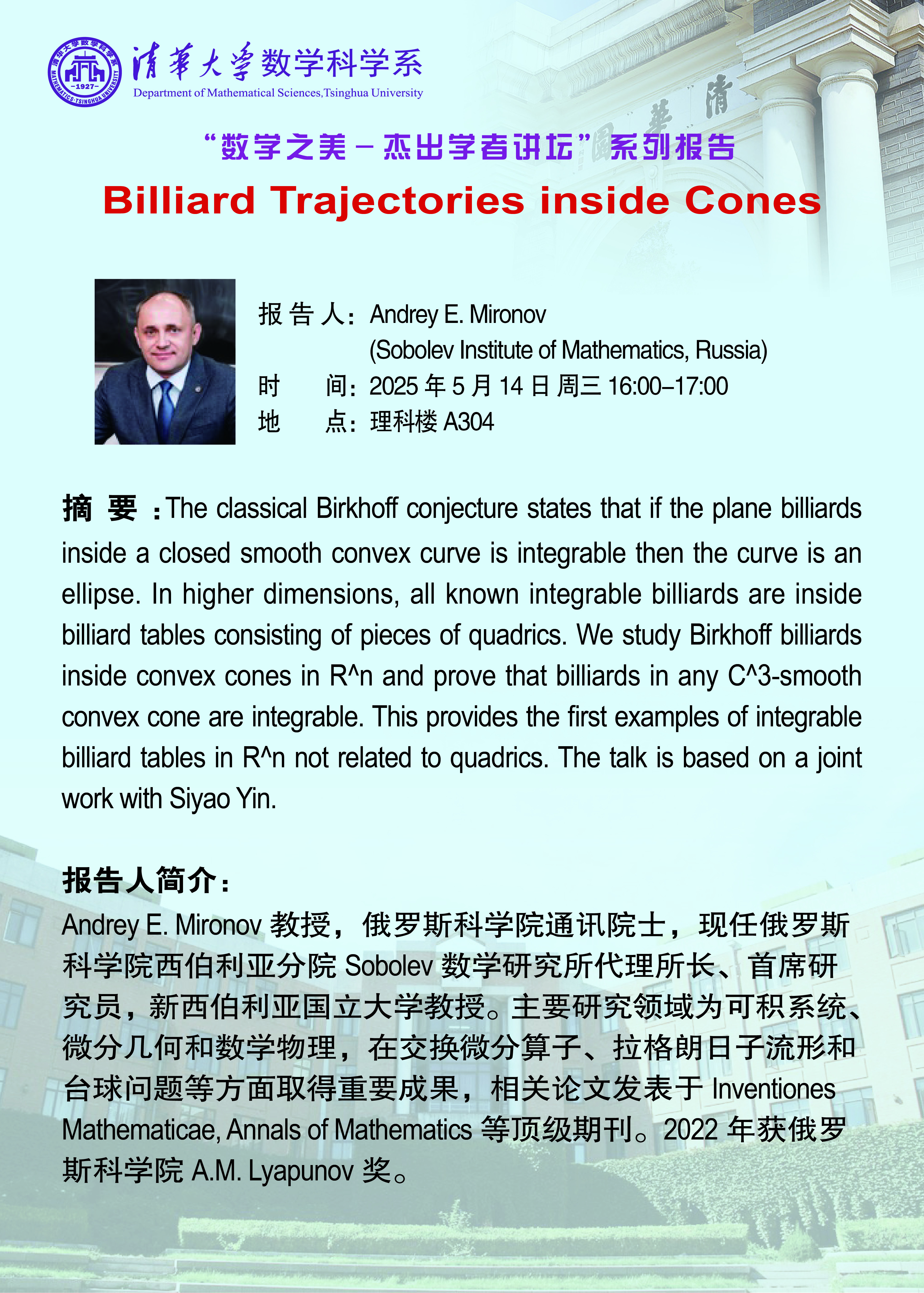【数学之美-杰出学者讲坛】2025年第1期 || Billiard Trajectories inside Cones