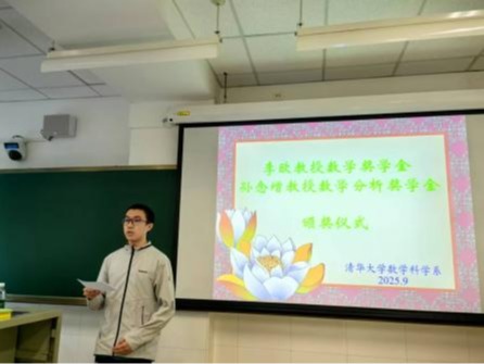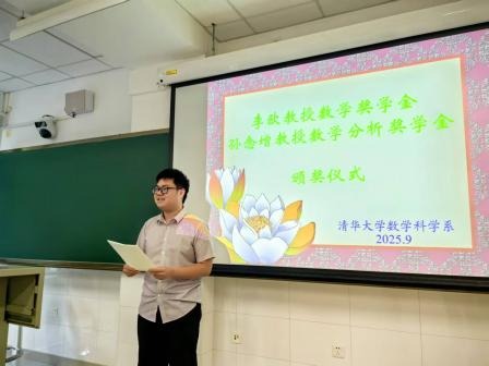 9月26日下午,清华大学数学科学系“孙念增教授数学分析奖学金”、“李欧教授高等代数奖学金”颁奖典礼在一教203教室顺利举办。