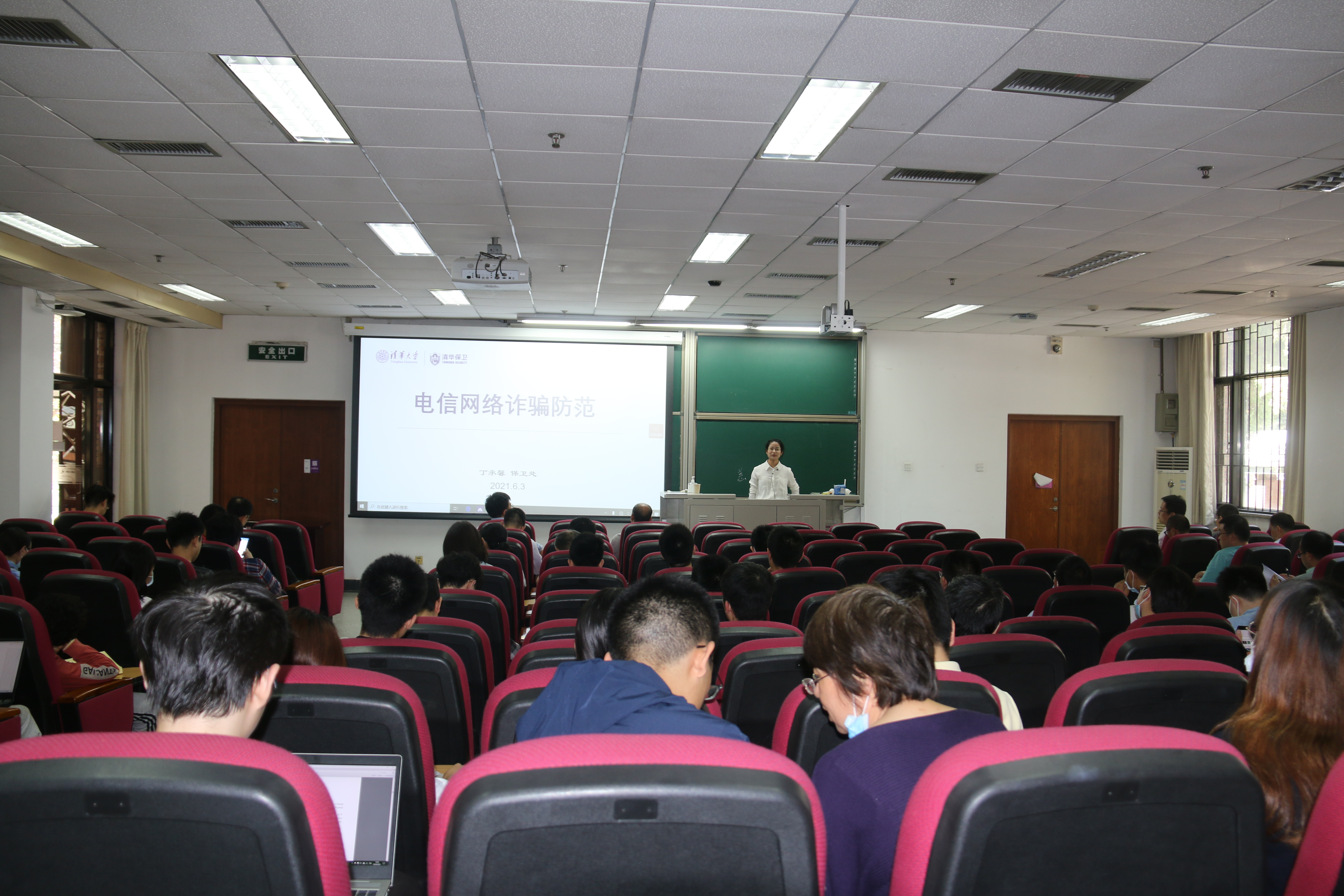 会议开始,数学系系副主任林润亮对近期校园网络诈骗的情况以及相关案例向大家进行了汇报,指导大家下载安装北京市公安局推出的“全民反诈”APP,向师生强调要重视网络安全的重要性,警惕“八个凡是”诈骗内容。校保卫处丁承馨从电信网络诈骗的主要类型、注意事项、实施手段等方面进行了详细讲解,分享如何有效识别网络电信诈骗。通过学习培训,师生们学习了防范电信网络诈骗的知识,增强了识别和防范诈骗的能力。