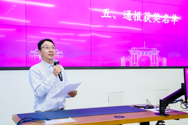典礼以齐唱国歌开始,随后数学学位评定分委员会主席张友金老师通报了研究生毕业、学位授予情况,数学系副主任左怀青老师通报了本科生毕业、学位授予情况,数学系党委副书记杨晶老师通报了获奖名单。