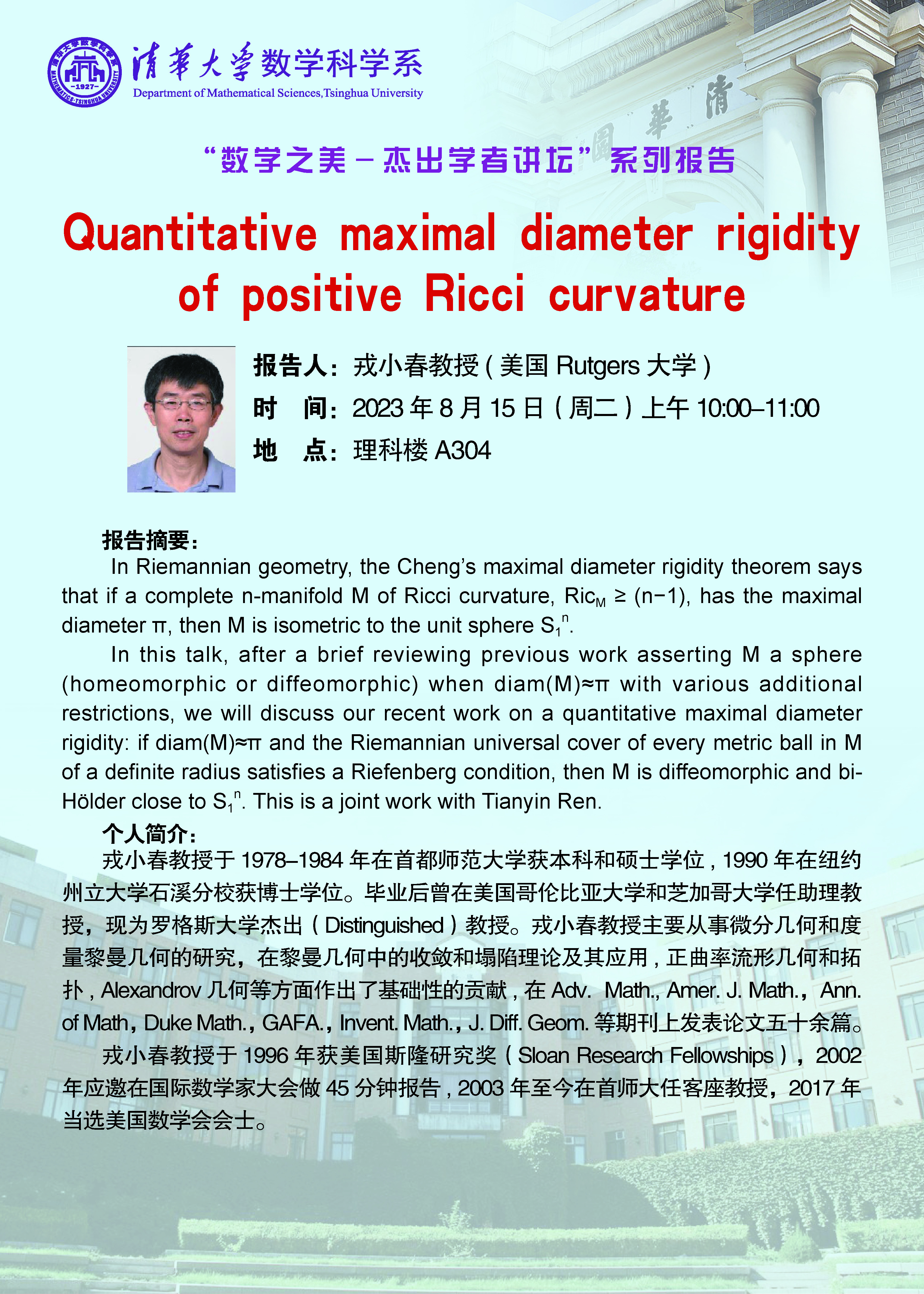 【数学之美-杰出学者讲坛】2023年第6期 || Quantitative maximal diameter rigidity of positive Ricci curvature
