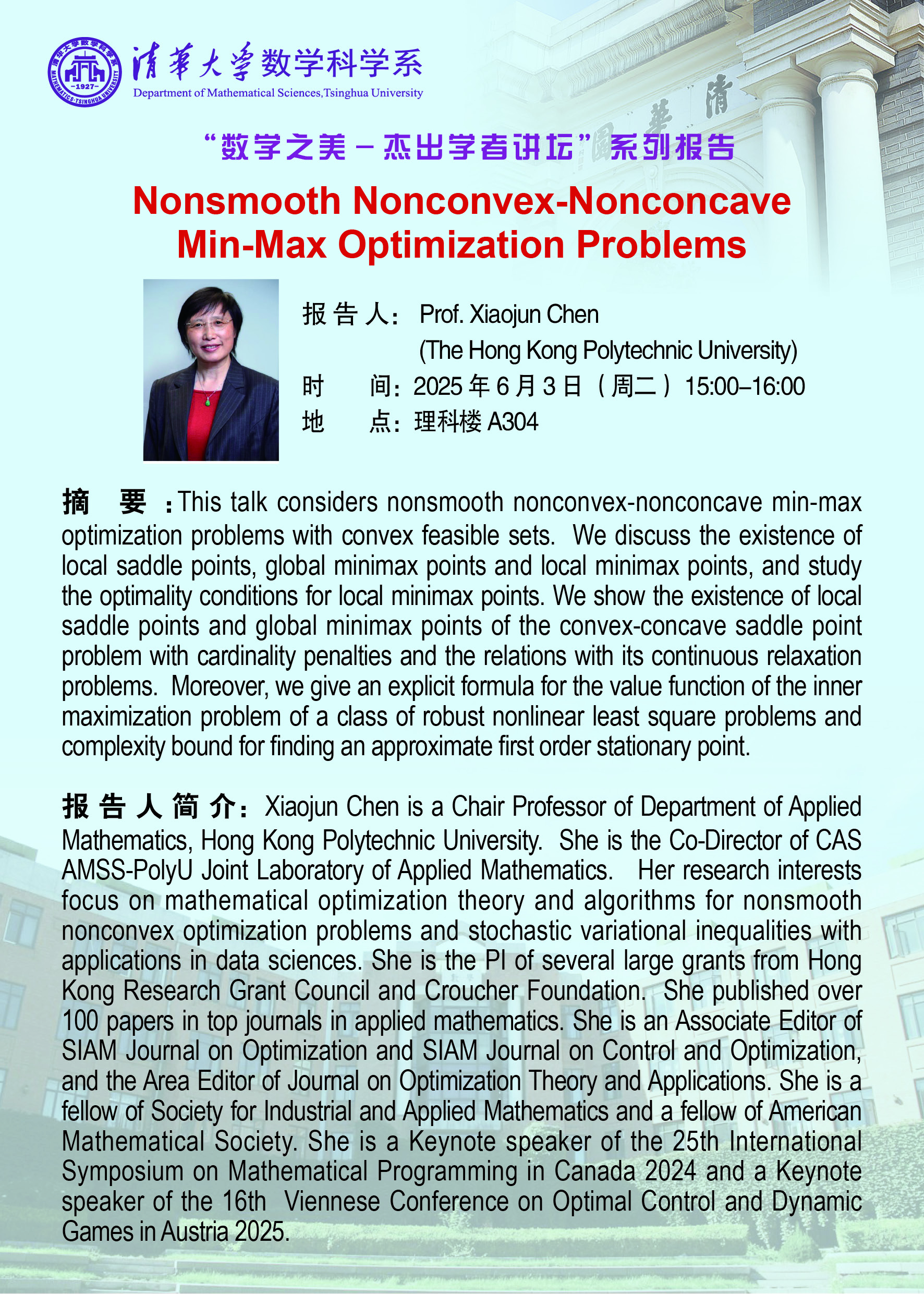 【数学之美-杰出学者讲坛】2025年第2期 || Nonsmooth Nonconvex-Nonconcave Min-Max Optimization Problems