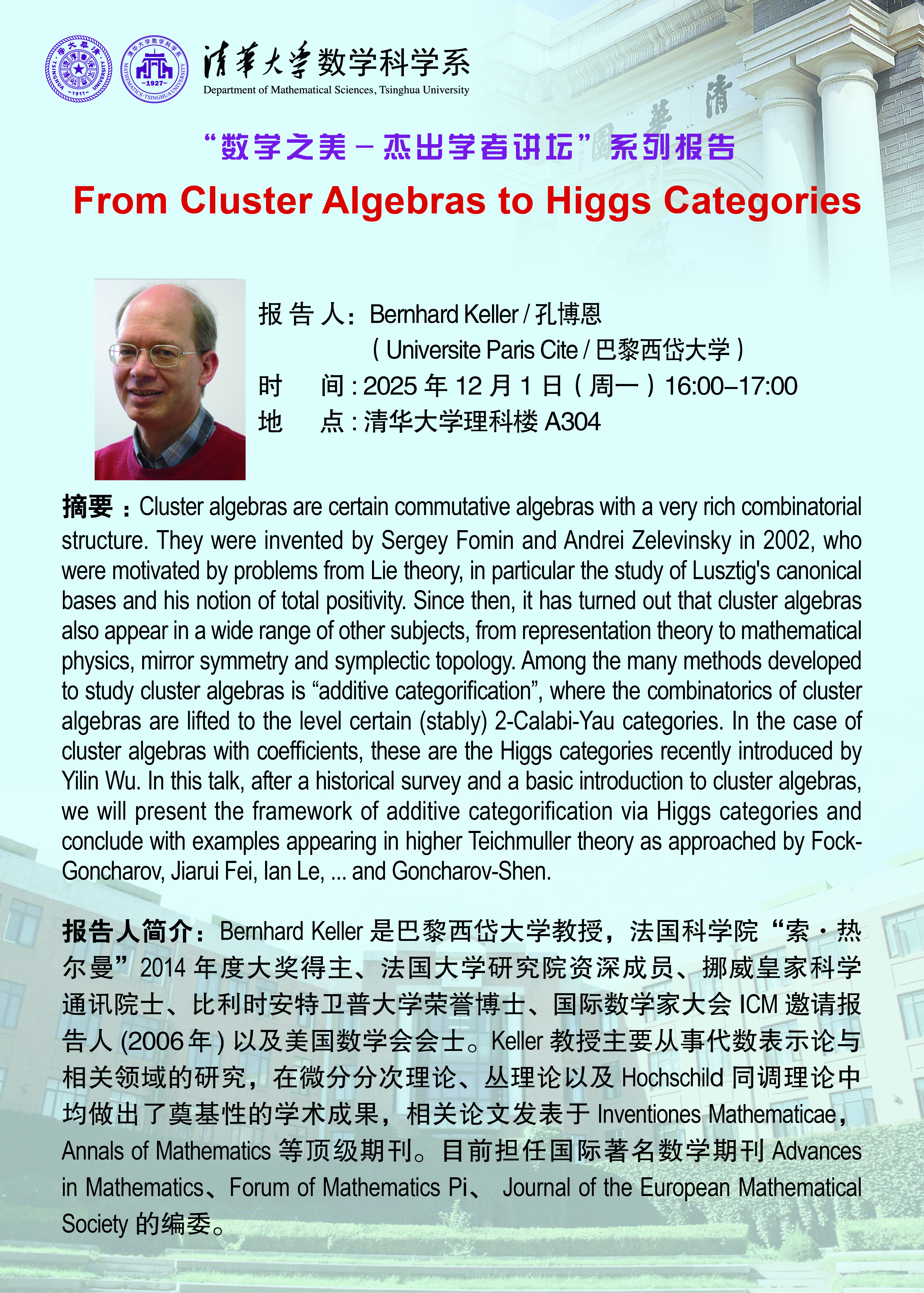 【数学之美-杰出学者讲坛】2025年第5期 || From Cluster Algebras to Higgs Categories