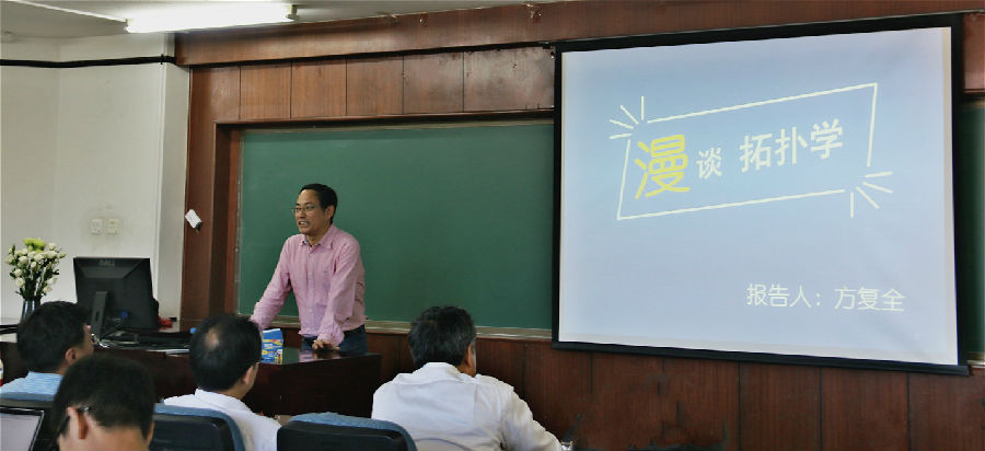 在本报告中,方复全院士从浅到深,从拓扑的起源、拓扑的内涵、拓扑学发展的重大事件谈起,并从典型例子简谈拓扑所研究的问题。此次交流报告始终洋溢着轻松自由的学术氛围,方复全院士在报告中不时与丘成桐先生、现场来自计算机系交叉学科、数学专业等师生就流形的浸入、嵌入问题,拓扑学发展历程等进行了热烈的讨论交流 。