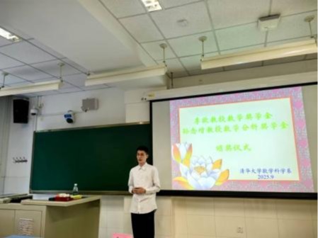 9月26日下午,清华大学数学科学系“孙念增教授数学分析奖学金”、“李欧教授高等代数奖学金”颁奖典礼在一教203教室顺利举办。